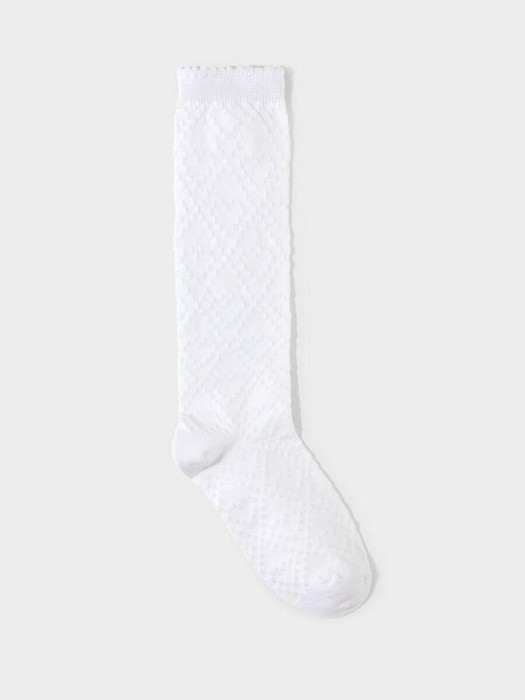 Гольфы для девочки с формованной пяткой и эластичной резинкой по краю. Связаны ажурным узором.