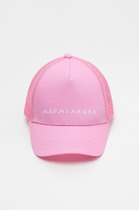 Кепка для девочки из текстиля и сетки. Спереди оригинальный принт. Регулируется по ширине и фиксируется на затылке с помощью пластиковой застежки.