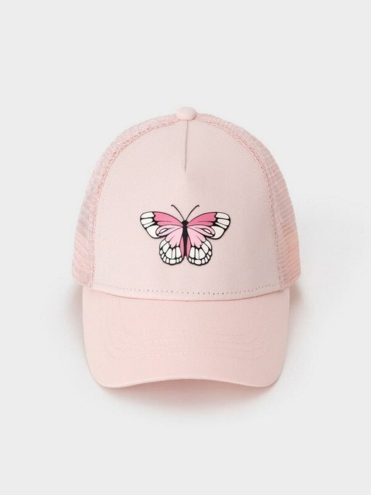 Кепка для девочки из текстиля и сетки. Спереди украшена оригинальной нашивкой. Регулируется по ширине головы и фиксируется на затылке с помощью пластиковой застёжки.