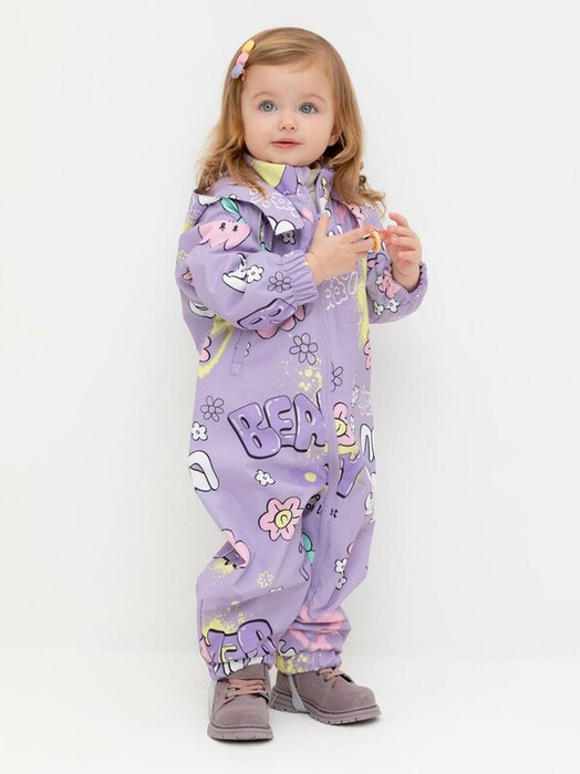 Ветровочный комбинезон ясельный из мембранной ткани с дополнительной тефлоновой обработкой. Данный вид обработки предохраняет изделие от загрязнения и лучше отводит влагу. Подклад из 100% хлопка. У изделия удлиненная молния для легкого одевания с защитой подбородка. Утяжка на капюшоне с потайными стопперами. По низу рукавов и брючин, а также на спинке изделия эластичная резинка для лучшего прилегания. Для фиксации комбинезона используются съемные силиконовые штрипки. В размерах 68-74, 74-80 функциональные отвороты на рукавах и брючинах. Во всех изделиях верхнего ассортимента для безопасности ребенка предусмотрены светоотражающие элементы.