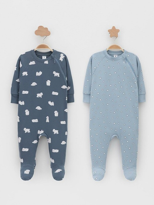 Комбинезоны для новорождённых из мягкого эластичного трикотажа интерлок, произведённого из натурального хлопка. В упаковке 2 штуки. Застёгиваются сбоку на молнию с мягкой защитой шеи и подбородка. Длинные рукава-реглан оканчиваются манжетами. Оригинальная набивка выполнена из стойких гипоаллергенных текстильных красителей. Все трикотажные полотна производятся в соответствии с нормами швейцарского сертификата ЭкоТекс.