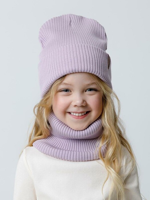 Комплект демисезонный из шапки с отворотом и снуда. Связан из высококачественного хлопка и выполнен переплетением ластик. Комфортно прилегает, обеспечивая защиту от холода и хороший теплообмен. Изделия хорошо переносят многократные стирки, сохраняя цвет и форму.
