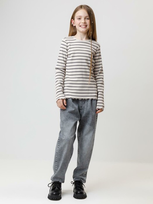 — Crockid лонгслив (футболка дл.рукав) для дев КР 302820/молочный,тем.серый,полоск