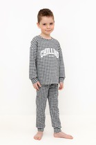 Тёплая пижама с начёсом из натурального хлопка. Джемпер с длинными спущенными рукавами и брюки с эластичной резинкой в поясе. Мягкие манжеты на рукавах и по низу брюк. Оригинальные набивка и принт выполнены из стойких гипоаллергенных текстильных красителей. Изделие сохраняет цвет и форму после многократных стирок. Все трикотажные полотна производятся в соответствии с нормами швейцарского сертификата ЭкоТекс.