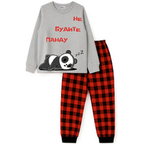Новогодняя пижама из натурального хлопка для мальчика. Футболка с короткими втачными рукавами и прямые брюки с эластичной резинкой в поясе. Пижама отлично подойдёт для создания уютных домашних образов или в качестве подарка на Новый год и Рождество. Оригинальная набивка и принт выполнены из стойких текстильных гипоаллергенных красителей. Изделие сохраняет цвет и форму после многократных стирок. Все трикотажные полотна производятся в соответствии с нормами швейцарского сертификата ЭкоТекс.