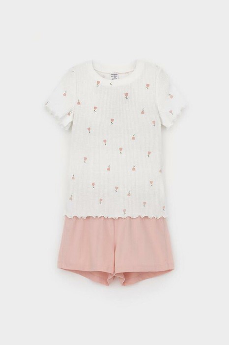 Трикотажная пижама из натурального хлопка. Футболка с короткими втачными рукавами изготовлена из эластичного трикотажа в рубчик. Шорты с эластичной резинкой в поясе выполнены из гладкого трикотажа супрем. Оригинальная набивка выполнена из стойких текстильных гипоаллергенных красителей. Изделие сохраняет цвет и форму после многократных стирок. Все трикотажные полотна производятся в соответсвии с нормами швейцарского сертификата ЭкоТекс.