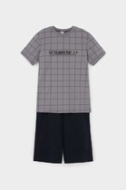 Трикотажная пижама в рубчик из натурального хлопка. Футболка с короткими втачными рукавами и шорты с эластичной резинкой в поясе. Оригинальная набивка выполнена из стойких текстильных гипоаллергенных красителей. Изделие сохраняет цвет и форму после многократных стирок. Все трикотажные полотна производятся в соответствии с нормами швейцарского сертификата ЭкоТекс.