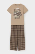 Трикотажная пижама из натурального хлопка. Футболка с короткими втачными рукавами изготовлена из эластичного трикотажа в рубчик. Шорты с эластичной резинкой в поясе выполнены из гладкого трикотажа супрем. Оригинальная набивка выполнена из стойких текстильных гипоаллергенных красителей. Изделие сохраняет цвет и форму после многократных стирок. Все трикотажные полотна производятся в соответствии с нормами швейцарского сертификата ЭкоТекс.