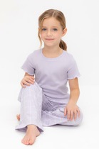 Трикотажная пижама из натурального хлопка. Футболка с короткими втачными рукавами и прямые брюки с эластичной резинкой в поясе. Оригинальная набивка выполнена из стойких гипоаллергенных текстильных гипоаллергенных красителей. Изделие сохраняет цвет и форму после многократных стирок. Все трикотажные полотна производятся в соответсвии с нормами швейцарского сертификата ЭкоТекс.