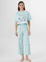 Трикотажная пижама из натурального хлопка для комфортного сна и отдыха. Свободная футболка с короткими спущенными рукавами и широкие брюки с мягкой эластичной резинкой в поясе. Гладкий материал приятен к телу, не теряет форму и позволяет коже дышать. Оригинальный принт и набивка выполнены из стойких текстильных гипоаллергенных красителей. Все трикотажные полотна производятся в соответствии с нормами швейцарского сертификата ЭкоТекс.