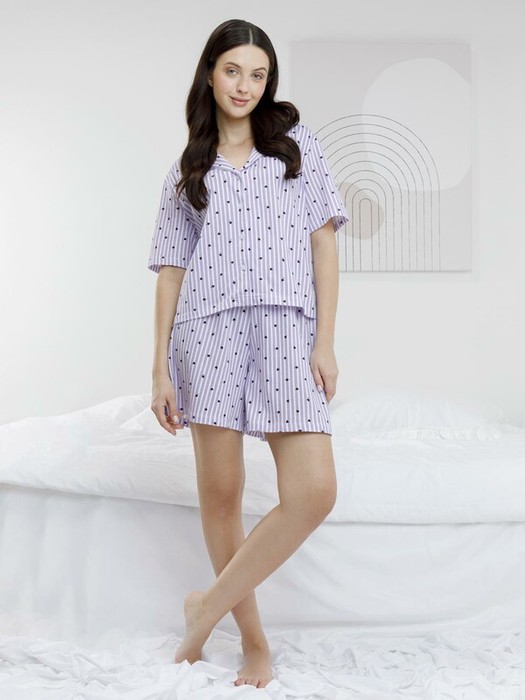 Трикотажная пижама из натурального хлопка для комфортного сна и отдыха. Рубашка на пуговицах с короткими рукавами и свободные шорты с мягкой эластичной резинкой в поясе. Гладкий материал приятен к телу, не теряет форму и позволяет коже дышать. Набивной рисунок выполнен из стойких текстильных гипоаллергенных красителей. Все трикотажные полотна производятся в соответствии с нормами швейцарского сертификата ЭкоТекс.