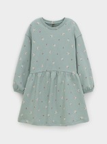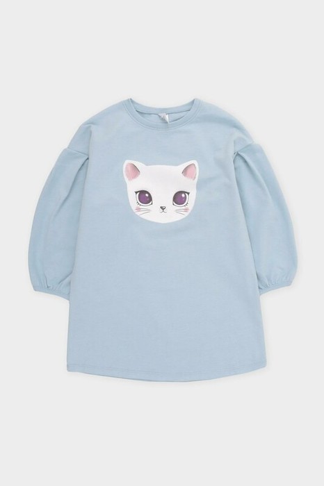 Однотонное платье для девочки из петельчатого футера. Свободные рукава приспущены, горловина эластична, у линии плеча складки. Оригинальный принт выполнен из стойких текстильных красителей. Изделие сохраняет цвет и форму после многократных стирок.
