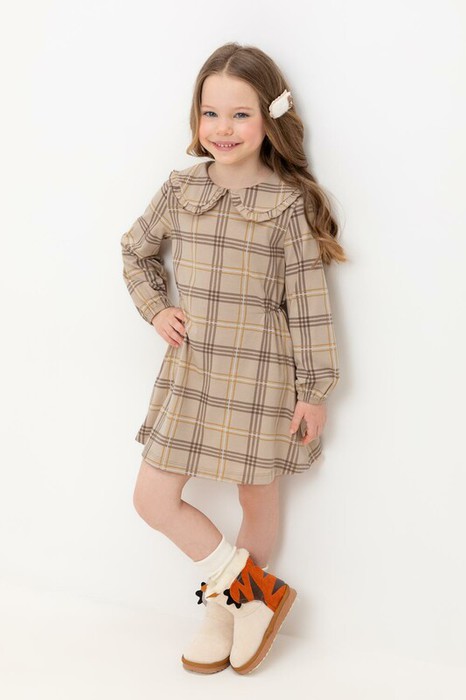 Crockid платье для дев КР 5890/тем.бежевый,текстильная клетка к493