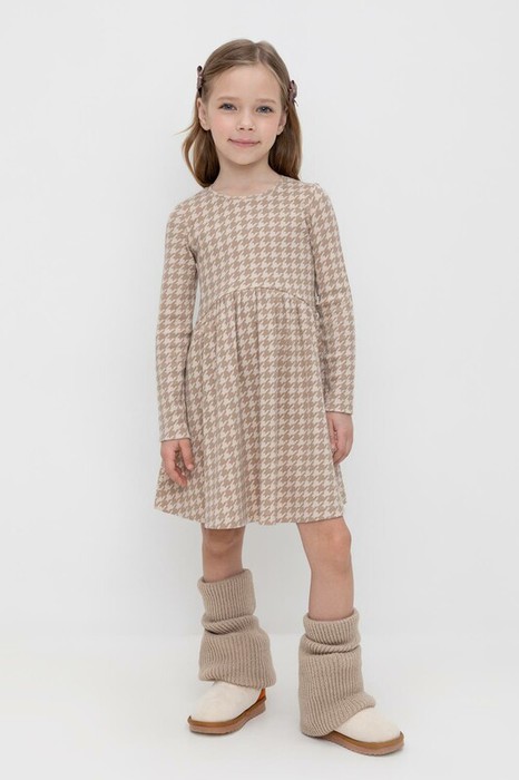 24.03 Crockid платье для дев КР 5892/бежевый,гусиная лапка к507
