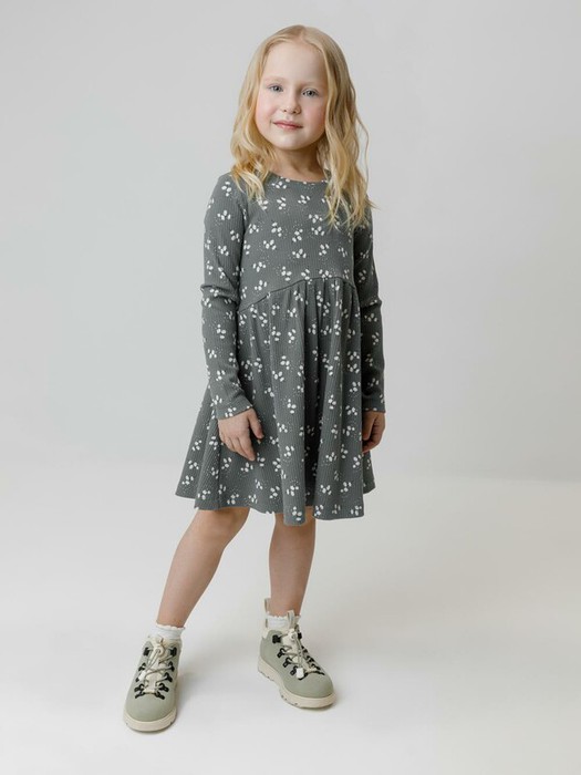 Платье для девочки из эластичного трикотажа в рубчик. Оригинальный рисунок выполнен из стойких текстильных гипоаллергенных красителей. Изделие сохраняет цвет и форму после многократных стирок. Все трикотажные полотна производятся в соответствии с нормами швейцарского сертификата ЭкоТекс.