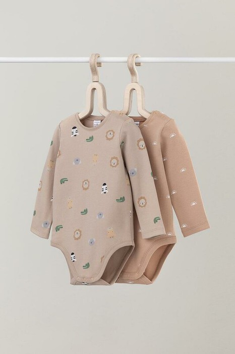Боди для новорождённых из мягкого эластичного трикотажа, произведённого из натурального хлопка. В упаковке 2 штуки. Застёгиваются на кнопки на плече и по низу изделий. Оригинальная набивка выполнена из стойких гипоаллергенных текстильных красителей. Все трикотажные полотна производятся в соответствии с нормами Швейцарского сертификата ЭкоТекс.