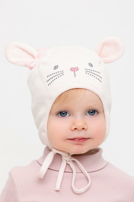 Демисезонная шапка для девочки с декоративными ушками из смесовой пряжи с добавлением высококачественного гребенного хлопка. Мягкий хлопковый подклад из трикотажного полотна интерлок. Комфортное прилегание, высококачественные материалы обеспечивают защиту от холода и хороший теплообмен. Декоративные элементы в виде страз надежно зафиксированы на изделии что позволяет выдерживать многократные стирки.