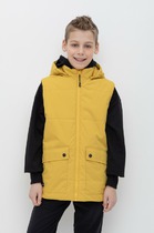 Стеганый жилет с капюшоном для мальчика с утеплителем Fellex®: 120 г/м2. Выполнен из мембранной ткани с дополнительной тефлоновой обработкой. Данный вид обработки предохраняет изделие от загрязнения и лучше отводит влагу. Подклад из 100% полиэстра. У изделия предусмотрена защита подбородка. Капюшон утягивается при помощи эластичного шнура со стопперами. Накладные карманы с клапанами на кнопках. Во всех изделиях верхнего ассортимента для безопасности ребенка предусмотрены светоотражающие элементы.