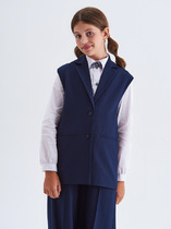 Стеганый жилет с капюшоном для девочки с утеплителем Fellex®: 120 г/м2. Выполнен из мембранной ткани с дополнительной тефлоновой обработкой. Данный вид обработки предохраняет изделие от загрязнения и лучше отводит влагу. Подклад из 100% полиэстра. У изделия предусмотрена защита подбородка. Капюшон утягивается при помощи эластичного шнура со стопперами. Накладные карманы с клапанами на кнопках. Во всех изделиях верхнего ассортимента для безопасности ребенка предусмотрены светоотражающие элементы.