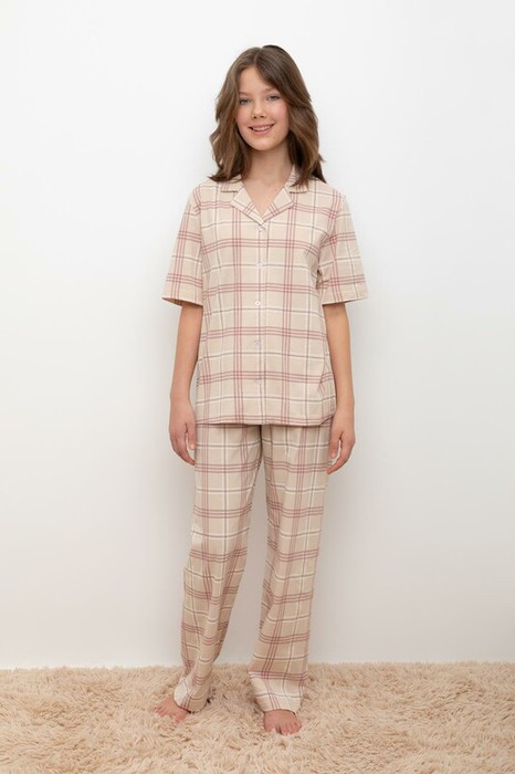 24.03 Cubby пижама для дев КБ 2829/бежевый,текстильная клетка
