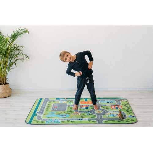 Ровная безворсовая поверхность позволяет устраивать разнообразные игры – построить замок из конструктора, проложить железную дорогу, организовать автомобильные гонки, расположить кукольную мебель, армию солдатиков и многое другое.