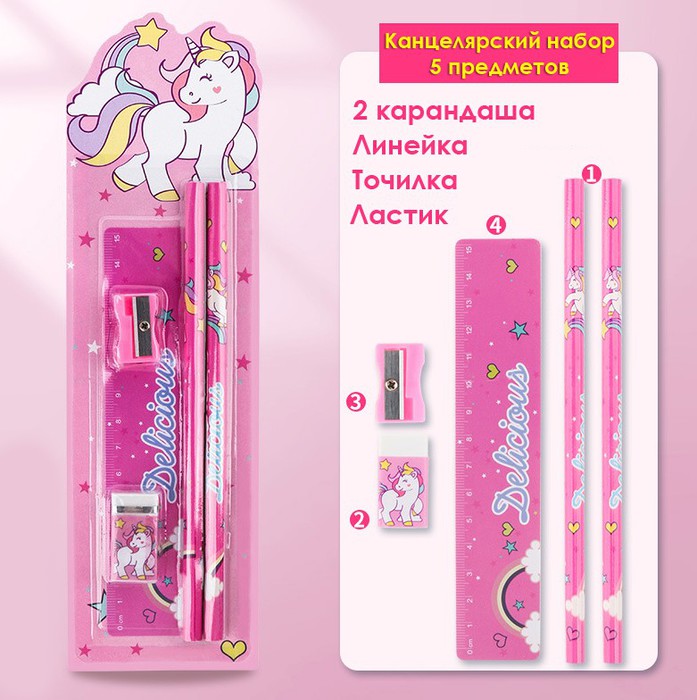 — Детский канцелярский подарочный набор из 5 предметов ПОНИ