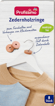 Кольца из кедрового дерева идеально подходят для шкафов, комодов, ящиков или чехлов для одежды. Кольца из американского красного кедра используются профилактически для защиты одежды от моли и работы с эфирным маслом. Эфирное масло американского красного кедра оказывает отпугивающее действие на моль, а его запах кажется людям приятным, натуральным и ароматным.