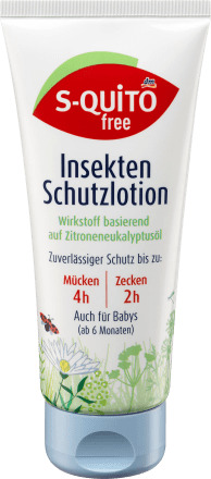 Лосьон для защиты от насекомых S-quitofree для нежной детской и детской кожи, а также чувствительной кожи обеспечивает надежную и немедленную защиту до 4 часов от укусов насекомых и до 2 часов от укусов клещей и слепней. Лосьон содержит активный ингредиент на основе масла лимонного эвкалипта и имеет особенно тонкий и приятный аромат. Легко распределяется и впитывается, не оставляя следов. Совместимость с кожей также подтверждена дерматологически
