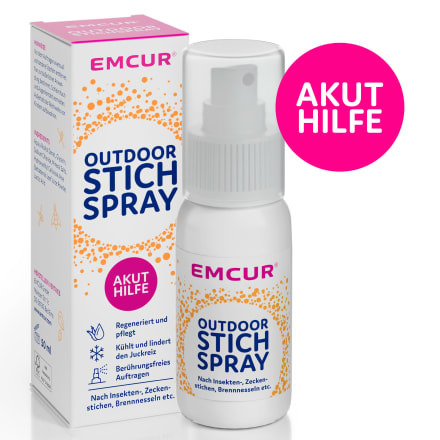 Спрей EMCUR® Outdoor Bite Bite Spray идеально подходит для немедленного ухода и регенерации кожи после укуса насекомого или клеща. Помогает также после контакта с крапивой, травяным клещом или дубовой процессионной плодожоркой. Средство неотложной помощи позволяет легко наносить средство, не прикасаясь к коже. Содержащийся в нем глицерин оказывает охлаждающее и успокаивающее действие. Зуд облегчается. Спрей также обладает питательными и увлажняющими свойствами благодаря алоэ вера. Спрей не содержит минерального масла, парафина и силикона, красителей, ароматизаторов и консервантов.