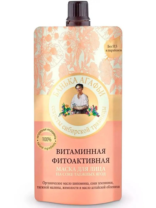 Фитоактивная маска для лица «Банька Агафьи», обогащённая маслами и соками таёжных ягод, насыщает кожу витаминами и микроэлементами. Глубоко увлажняет и выравнивает цвет лица.