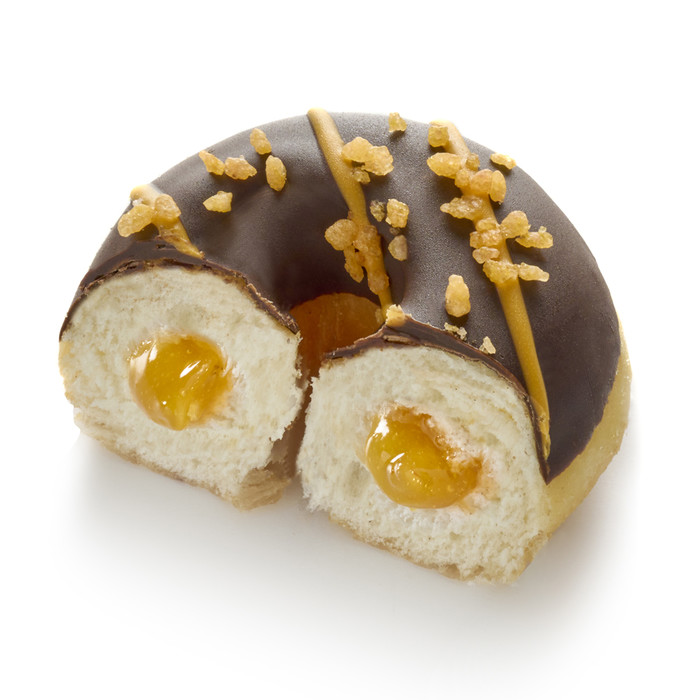 Тесто: пшеничная мука, сахар, вода, пальмовое масло, маргарин (растительный жир и масло (пальмовое, рапсовое), вода, концентрированный лимонный сок), дрожжи, соль, эмульгатор (E471-E472e-E481), глютен (пшеничный), разрыхлитель (E450i-E500ii), декстроза, стабилизатор (E412), антиокислитель (Е300), сухая сыворотка (молоко), лактоза (молоко), ферменты. Начинка: сахар, глюкозный сироп, вода, концентрированный апельсиновый сок, концентрированный лимонный сок, натуральный ароматизатор, загуститель (E440), краситель (E160a). Глазурь: сахар, какао-масса, масло какао, растительные масла и жиры (пальмоядровые, пальмовые, кокосовые), молочный жир, обезжиренный какао-порошок, эмульгатор (E322), ароматизатор, краситель (E160c). Декор: сахар, масло какао, глюкозный сироп, натуральный ароматизатор, регулятор кислотности (Е330), краситель (E161b), экстракт бузины Продукт содержит глютен, лактозу.