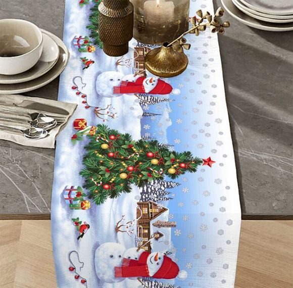 Дорожка столовая "Снеговик" 45*150 см. хлопок 100%