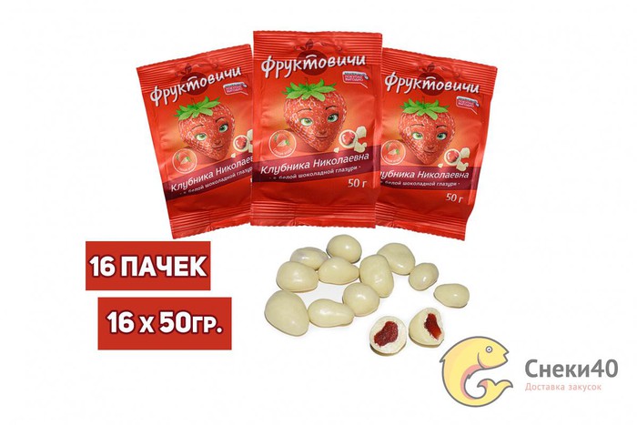 Совместные покупки Нижний Тагил Продукты Конфеты, сладости — Драже "Клубника Николаевна" в белой шоколадной глазури 50г (16 шт.)