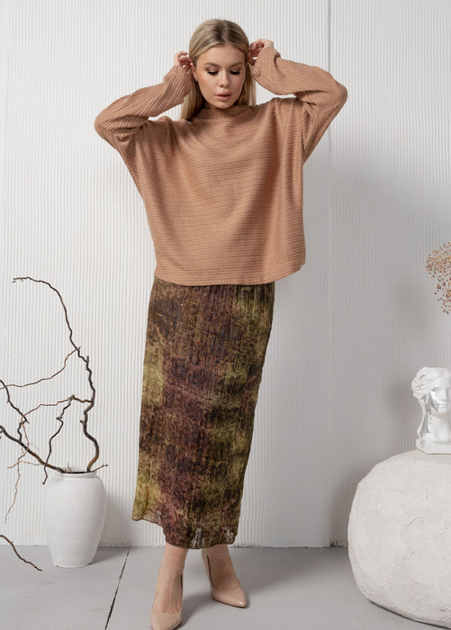 Модный, обьмный свитшот из красивого структурного трикотажа "коса" с прямыми спущенными рукавами.