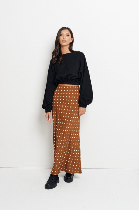 Комфортный стильный джемпер выполнен из трикотажного полотна черного цвета. Характеристики: джемпер свободного кроя, горловина овальная, рукав спущен, по низу рукава резинка, низ изделия на резинке. Длина по спинке 48, длина рукава от края горловины 79 см.