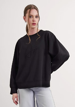 Джемпер из ажурного трикотажа, свободного силуэта, с длинным рукавом и горловиной "лодочка". Перед изделия декорированавторской вышивкой с применением пайеток и серебристых нитей.