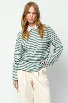 Джемпер из трикотажас легким мерцанием, свободного силуэта, с длинным рукавом и V-образной горловиной. На переде эффектный накладной карман из пайеток с бахромой.