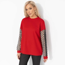 Туника из плотного ,мягкого, комфортного хлопка. Удлиненная прямого силуэта, со спущеной линией плеча, по горловине в планке декоративный шнурок с наконечниками, в боковых швах карманы, акцент сдеоан на дизайнерской печати буквы. Рукав длиной 7/8 с широкой манжетой на пату и пуговицу. Спинка лаконичная. Супер вариант спрот -шик на работу , встречу и для будней.