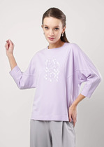 Джемпер прямого силуэта из трикотажного полотна. Перед с застежкой поло и нагрудными вытачками. По воротнику, низу изделия и низу рукава отстрочена декоративная строчка. Длина джемпера - 61 см, длина рукава - 61 см.