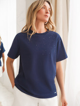 Vilatte Футболка из хлопкового облегченного полотна с принтом фольгой D49.020 че
