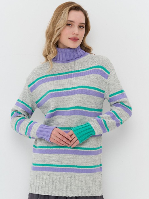 Джемпер NewVay 7242-40301 св.серый меланж/гортензия/деликатный зелёный