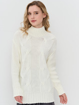 Vilatte Свитер фактурной вязки с узором косы D34.192 светло-оливковый меланж