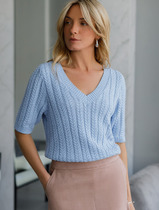 АКЦИЯ 8 марта! Джемпер с V-вырезом с коротким рукавом из вискозы.