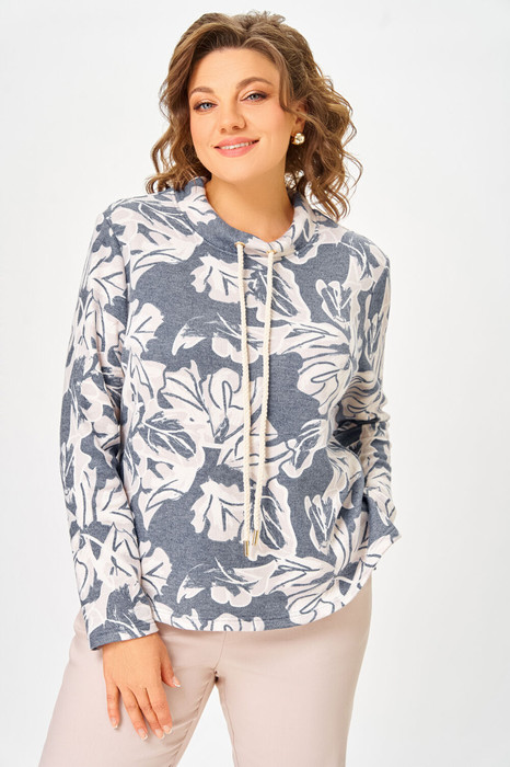 Джемпер из мягкого вискозного трикотажного полотна прямого силуэта, слегка расширен к низу. Перед и спинка цельные, в боковых швах разрезы длиной 11 см.