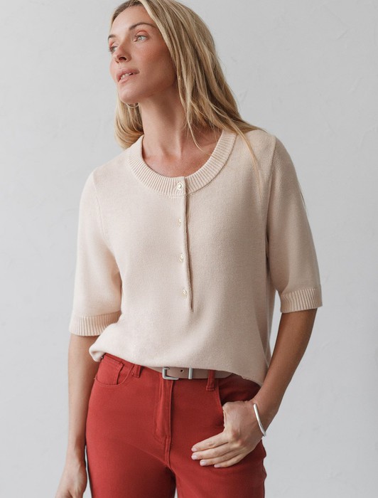Состав: 70%Хлопок 21%ПА 9%Кашемир Размер товара на первом фото: 42Джемпер тонкой вязки выполнен из хлопка с добавлением кашемира. Модель с круглым вырезом дополнена золотистыми пуговицами. Мягкая и очень приятная пряжа совершенно не колется, сохраняет тепло при этом не перегревая, гарантируя безупречный комфорт.