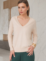 Джемпер с V-вырезом выполнен из мягкой пряжи с кашемиром. Лаконичная, женственная и универсальная модель будет одинокого хорошо смотреться, как самостоятельный верх, либо на блузку, как более теплый вариант. Благодаря своей универсальности подойдет для любого гардероба и в офисный дресс-код. Мягкая пряжа очень приятная к телу, поддержит комфорт на протяжении всего дня, при этом не перегревая. Сочетается в костюме с брюками D38.013, D38.012 и юбкой D36.016