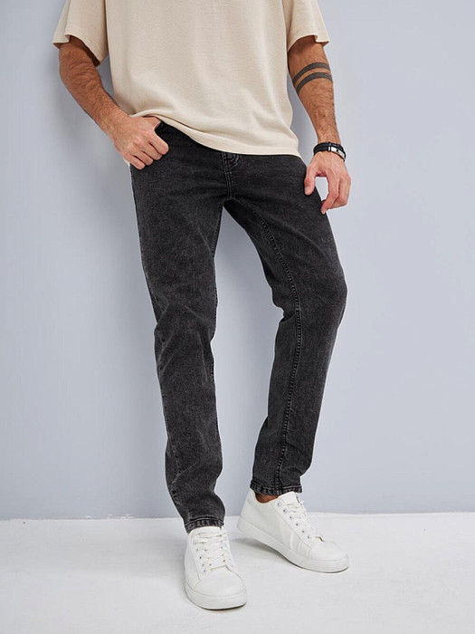 Мужские классические джинсы с пятью карманами. Посадка Slim Fit (облегающие по бедрам) предлагает зауженный крой, который подчеркивает силуэт и не стесняет движения. Средняя высота талии, застежка на молнии, зауженные к низу. Выполнены из слабоэластичной ткани denim comfort stretch, цвет ткани Black/Black (лицевая и изнаночная стороны ткани черные). Специальная темная стирка  "towel wash", мраморный эффект.      Выберите мужские классические джинсы Slim Fit и создайте стильный и уверенный образ, который подчеркнет вашу индивидуальность!