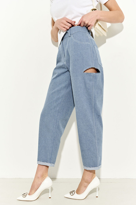 Стильные женские джинсы выполнены из натуральной хлопковой ткани классического голубого цвета, прилегающие в области талии, зауженные к низу; по переду и спинке функциональные карманы; по боковому шву декоративный разрез с необработанным срезом. Застежка на молнию, петлю и пуговицу. Джинсы полностью соответсвует заявленному размеру. Пожалуйста, пользуйтесь таблицей замеров готового изделия, чтобы подобрать идеальный размер.