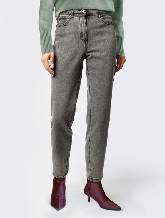 Состав: 94%Хлопок 6%ПУ Плотность: 14.5 OZ Параметры модели на первом фото: Рост 172, бюст 88, талия 64, бедра 88Джинсы mom-fit светло-серого цвета выполнены из эластичного денима. Лаконичная модель с легкой стиркой хорошо впишется в непринужденный повседневный образ с вещами и нейтральной, и яркой гаммы. Комфортная посадка на талии подходит для любой фигуры, ткань хорошо тянется и не сковывает движений. Изделие дополнено классической задней нашивкой из бежевой эко-кожи с логотипом бренда.