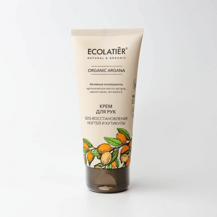 ECOLATIER Organic Argana SOS Восстановление интенсивно смягчает кожу рук, восстанавливает кутикулу и ногти после шелака, благодаря активным компонентам в составе. Предотвращает появление сухости кожи и заусенцы. Соответствует требованиям Vegan Society (Великобритания). Продукт содержит более 99% ингредиентов растительного происхождения.Органические ингредиенты: Органическое масло арганы получено методом холодного отжима плодов арганового дерева. Благодаря высокому содержанию ненасыщенных жирных кислот, витамина Е, прекрасно увлажняет и смягчает кожу, препятствует старению. Восстанавливает защиту верхнего слоя эпидермиса, глубоко питает клетки на уровне дермы. Благодаря содержанию стеринов, имеет противовоспалительные свойства, устраняет сухость и раздражение. Значительно замедляет процесс старения кожи, защищает ее от вредного ультрафиолетового излучения. Нанесите небольшое количество крема на кожу до полного впитывания